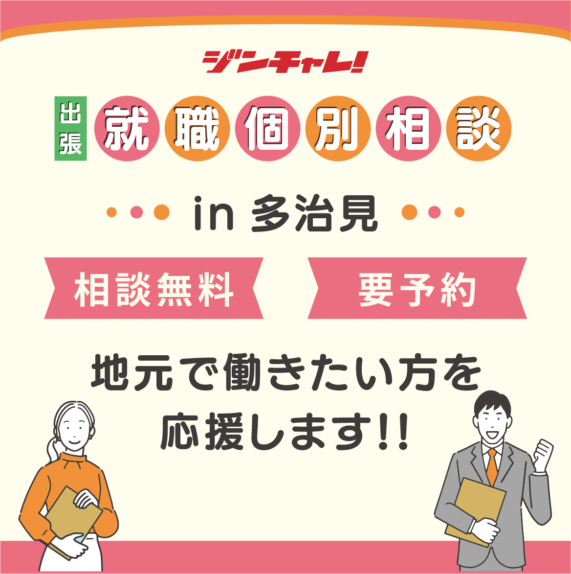 ジンチャレ!出張就職個別相談 in多治見(毎週火・水曜開催 ※第2週のみ火・土曜開催)
