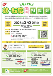 | 備考 | 就・転職に関するご相談は「ジンチャレ!ぎふ」や「ジンチャレ!ぎふJobステーション」、またWebでもご利用いただけます。 |