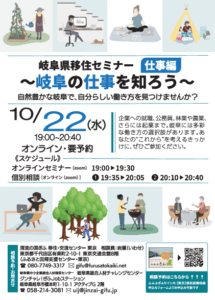 イベント名 | 移住セミナー「岐阜の仕事を知ろう」 |