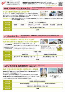 | 参加企業 | ●岐阜プラスチック工業株式会社 プラスチック製品製造業 ●ゲンキー株式会社 卸売業・小売業 ●ミツワ株式会社 岐阜事業所 輸送用機械器具製造業 |