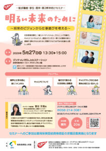 | イベント名 | セミナー「明るい未来のために~将来のビジョンから仕事選びを考える~」(2026年5月27日開催) |