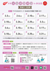 ジンチャレ!出張就職個別相談 in多治見(毎週火・水曜開催 ※第2週のみ火・土曜開催)